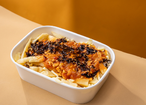火鸡酱的咸香微辣裹住酥脆薯条, 烤后奶香四溢,拌着米饭每口都超满足!