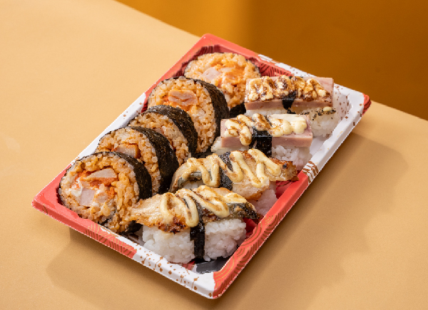 炙烤鳗鱼,炙烤午餐肉与寿司卷的多重搭配。