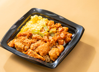鸡肉烤至外皮微焦、肉质鲜嫩后,铺在蓬松米饭上 搭配蔬菜点缀,淋少许汤汁制成的便捷...