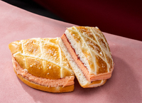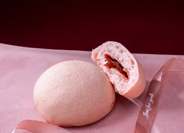 圆润松软的面包裹藏草莓酱与酸奶味酱,果味的鲜甜与乳香的清爽。