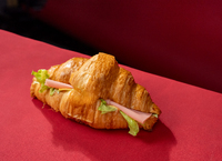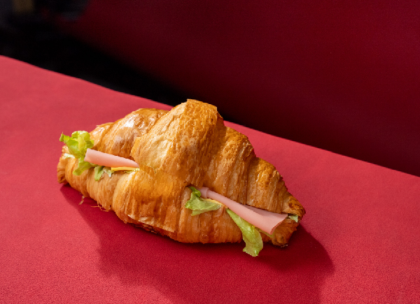 金黄酥脆的可颂外壳,包裹着鲜嫩火腿与清爽西生菜,咸香不腻,脆嫩交织。